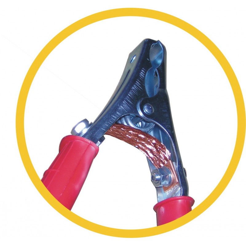 Cavi per avviamento di emergenza costruiti con cavo superflessibile di alta qualità e pinze stampate con treccia di rame, resistenti alle basse temperature e a condizioni gravose di impiego.